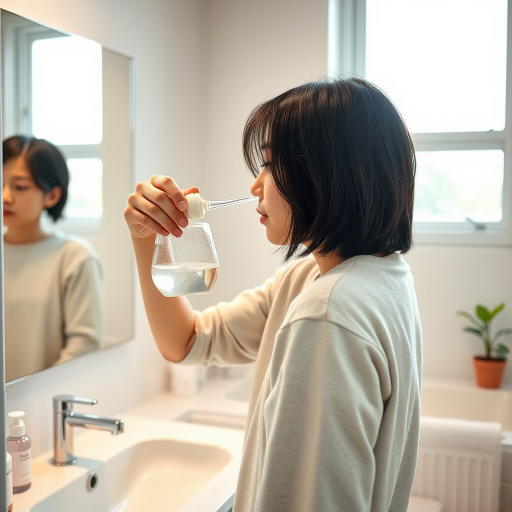 - 아침: 미온 생리식염수 세척 → 비강 스테로이드 스프레이 → 따뜻한 물 한 컵